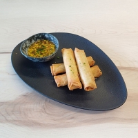 • Misturar os cubos de manga com o molho agridoce, a erva picada e o chili picado.